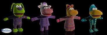 All the Pajanimals together. This was a fantastic and fun project to work on, since the characters were critiqued by the Jim Henson Company. It was very challenging to get the muppets looking fluffy with such low poly specs.