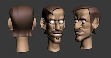 I was having difficultly visualizing this character's head after I concepted it in 2D. I decided that I would make a quick 3D sculpt in Zbrush to work on the forms before moving on to the final 3D character model.